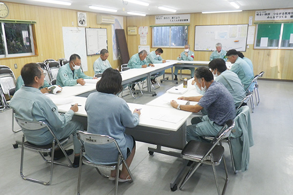 月に一度、役員と作業責任者が集まり、各現場の危険な場所に対する事故防止策や、注意事項等を検討します。